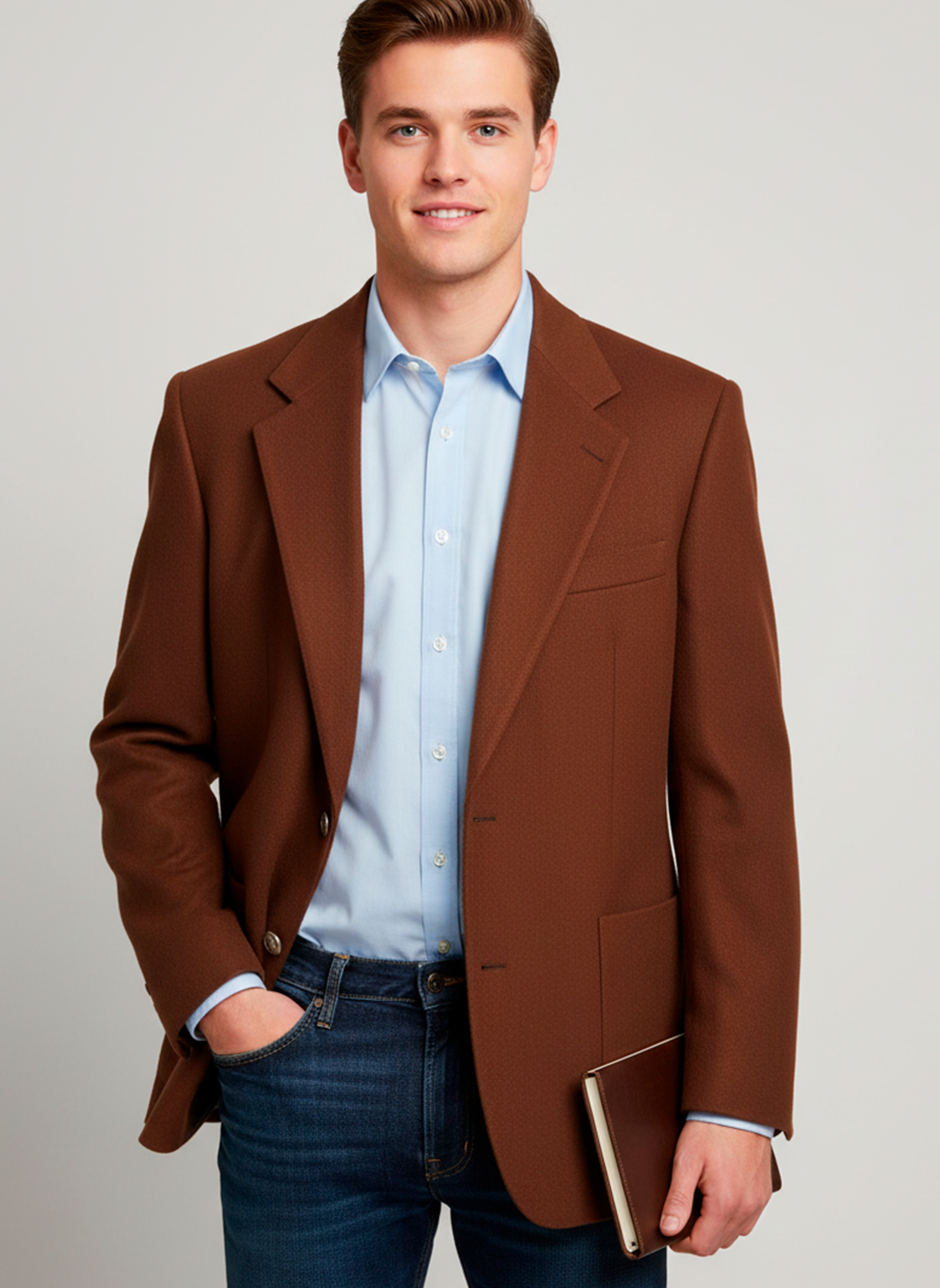 Americana UNISEX Burberrys vintage en tono marrón cálido, confeccionada en mezcla de lana virgen y cashmere con forro de viscosa. Corte clásico de dos botones, bolsillos de parche y botones metálicos con logo ecuestre. Ideal para looks smart casual o formales en otoño e invierno.